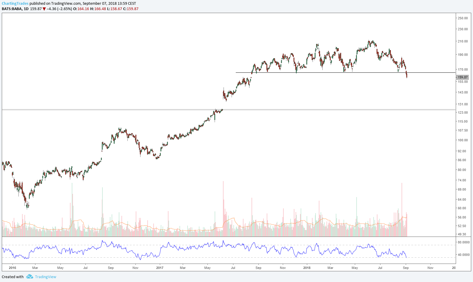 I think that Alibaba could give us some clues. It broke an important support at $165 per share which is indicating a rounding top has been formed and is now targeting to fill the gap at $125 at least.