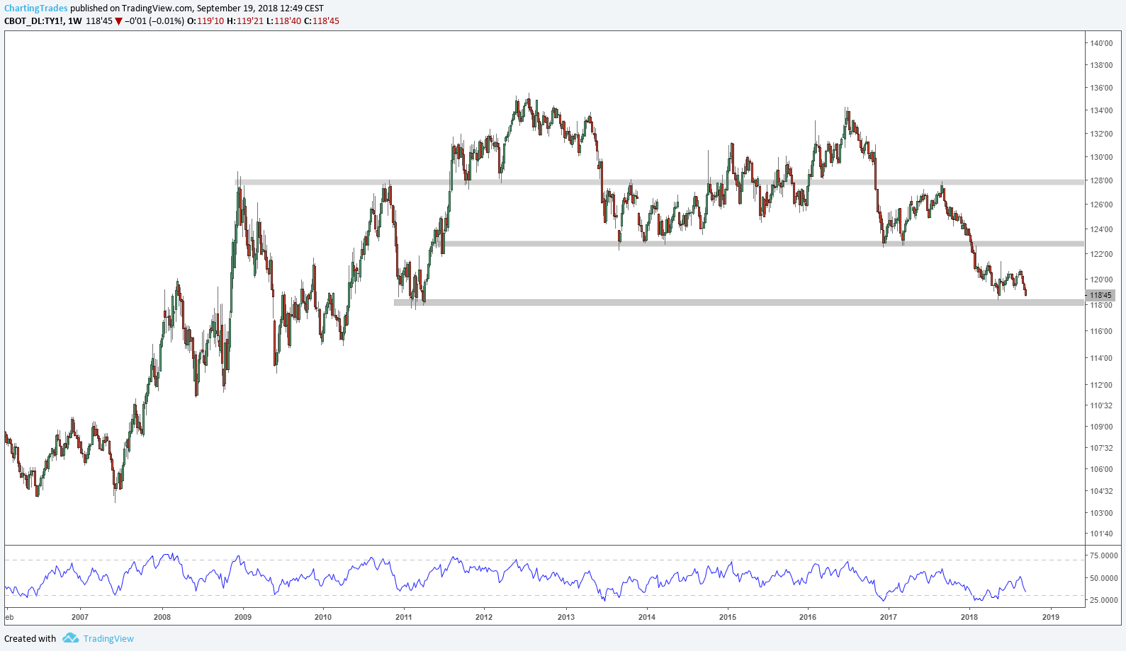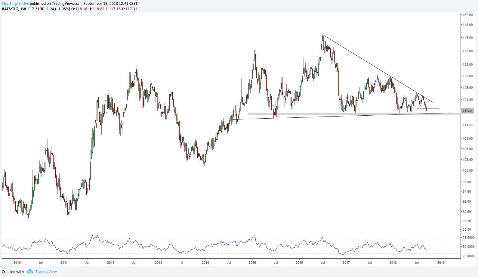 Should it get below 118 then it could quite likely continue towards 114 at least. But a much bigger downside risk or downside potential is in TLT.